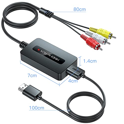 Kirolle Convertitore da HDMI a RCA con Cavi HDMI e RCA, Adattatore HDMI RCA, Convertitore da HDMI a AV Composito CVBS, Convertitore HDMI a Composite