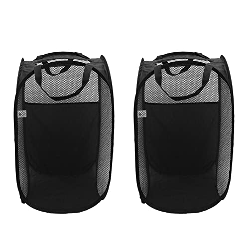 Kisbeibi Confezione da 2 cesti portabiancheria in rete, di grande capacità, pieghevoli per bucato con manici per il trasporto, cesto per la lavanderia, per casa, hotel, dormitorio universitario (nero)