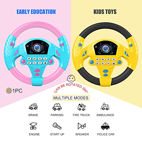 Kisbeibi - Giocattoli per volante per bambini, simulatore di guida, simulatore di auto, con musica per bambini, ragazzi e ragazze (nero giallo)