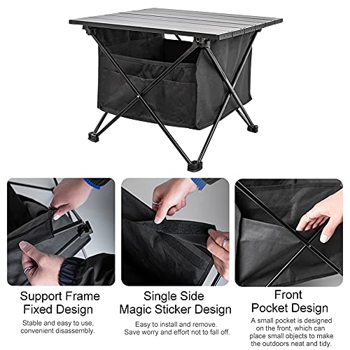 Kisbeibi Tavolo da campeggio pieghevole con borsa portaoggetti portatile pieghevole in alluminio da spiaggia (nero)