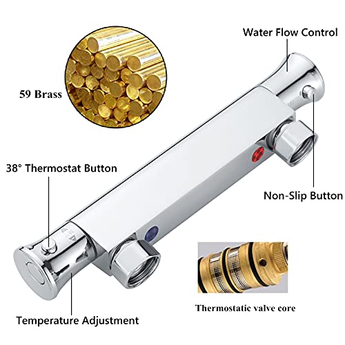 Kisimixer Miscelatore Termostatico per Doccia in Ottone Cromato Con Protezione Sicurezza, Termostatico 38 ℃ Anti-scottatura, Rubinetto Termostatico per Bagno