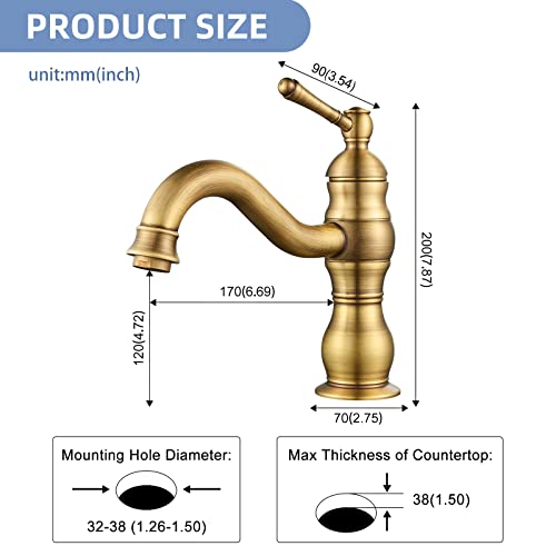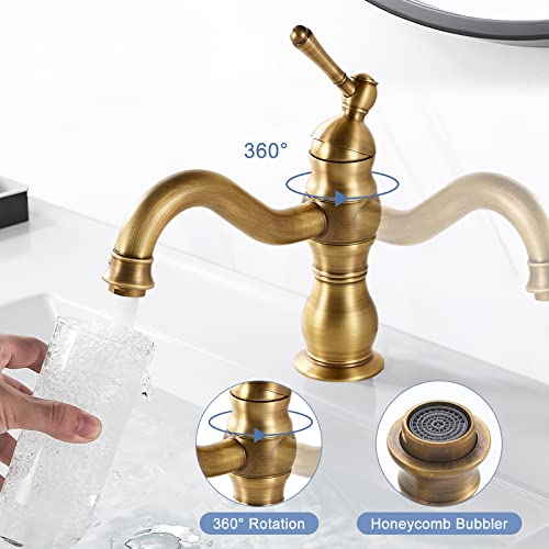 Kisimixer Rubinetto Bagno Lavabo Ottone Antico, Miscelatore Lavabo Bagno Vintage Girevole a 360°, Rubinetto Bagno Monocomando Con Finitura Dorata Sterile, Calda e Fredda del Rubinetto