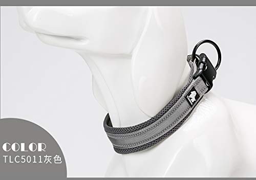 Kismaple Collare Cane Riflettente Regolabile Imbottito Morbido Accogliente Traspirante Collare per Cani Medio, Peso Leggero Avventura all'Aria Aperta Collari di addestramento (M 40-45cm, Grigio)
