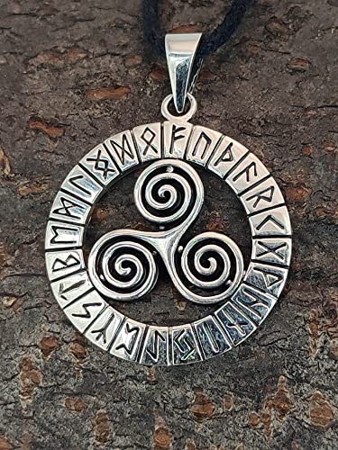 Il motivo del triscele (spirale a tre) è tradizionalmente diffuso in numerose culture del mondo. Particolarmente comune è stato l'uso negli spazi culturali nordici e celtici. Il triscele, di regola, rappresenta simbolicamente il modo di vivere. Ci sono molte interpretazioni diverse, con il numero tre che gioca sempre un ruolo importante: passato presenti-futuro o nascita-vita-morte o terra-acqua-aria o anche gioventù-adulto-greisen. Le rune rappresentano i 24 segni
