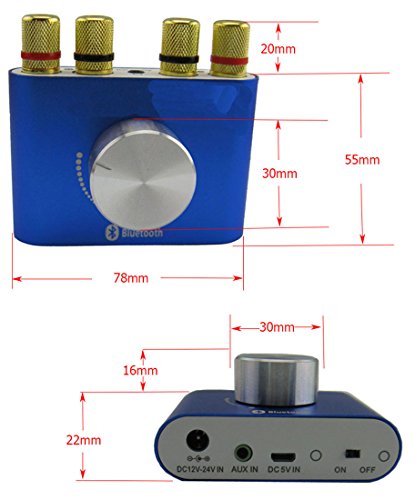 Kissing u Bluetooth HiFi Amplificatore stereo 30 W * 2 canali digitale mini amplificatore audio diy per auto iphone ipad per TV (Blu)