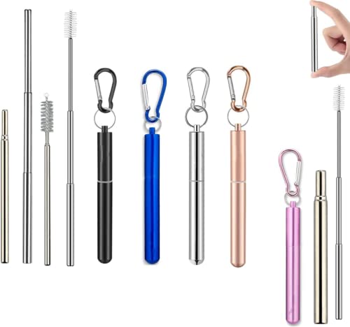 Kiswleon 5 Cannucce Riutilizzabili,Cannucce Telescopiche In Acciaio Inox,Cannuccia In Metallo Con Alloggiamento In Metallo,Portachiavi, Spazzole Per La Pulizia Per Cocktail,Frullati E Succhi Di Frutta