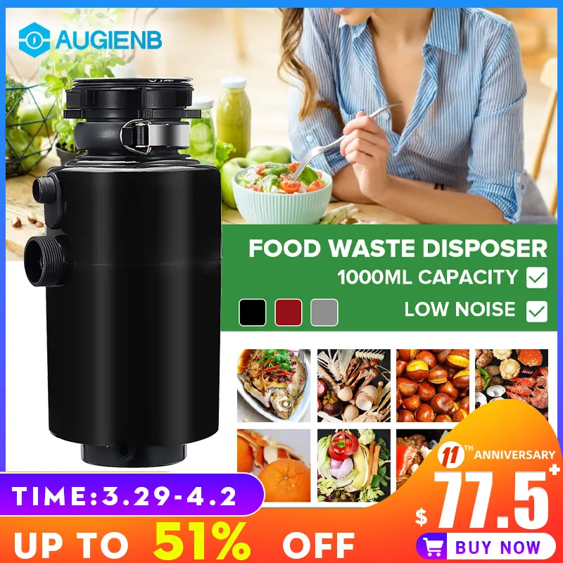 Kitchen Food Garbage Processor Disposal Crusher 3800rpm Food Waste Disposer 900ml Stainless steel Grinder Air Switch 560W 220V