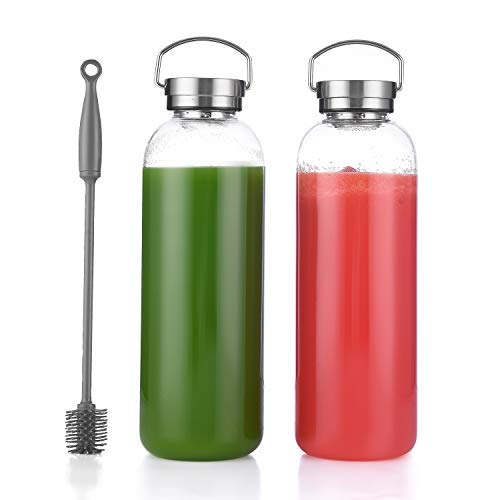 Vetro borosilicato sicuro: borraccia in vetro atossica. Bottiglia di vetro grande e non tossica o contenitore per alimenti, adatta per conservare succhi di frutta, bevande fredde, bevande calde, frutta secca, chicchi di caffè, pasta, ecc. Facile da trasportare e da pulire, lavabile in lavastoviglie. 100% vetro borosilicato ad alta densità. Utilizziamo materiali organici incontaminati per produrre vetro borosilicato di altissima qualità. Nessun sapore particolare, lavabile in lavastoviglie. Godetevi le bevande ghiacciate (-20 °C) o calde (100 °C).