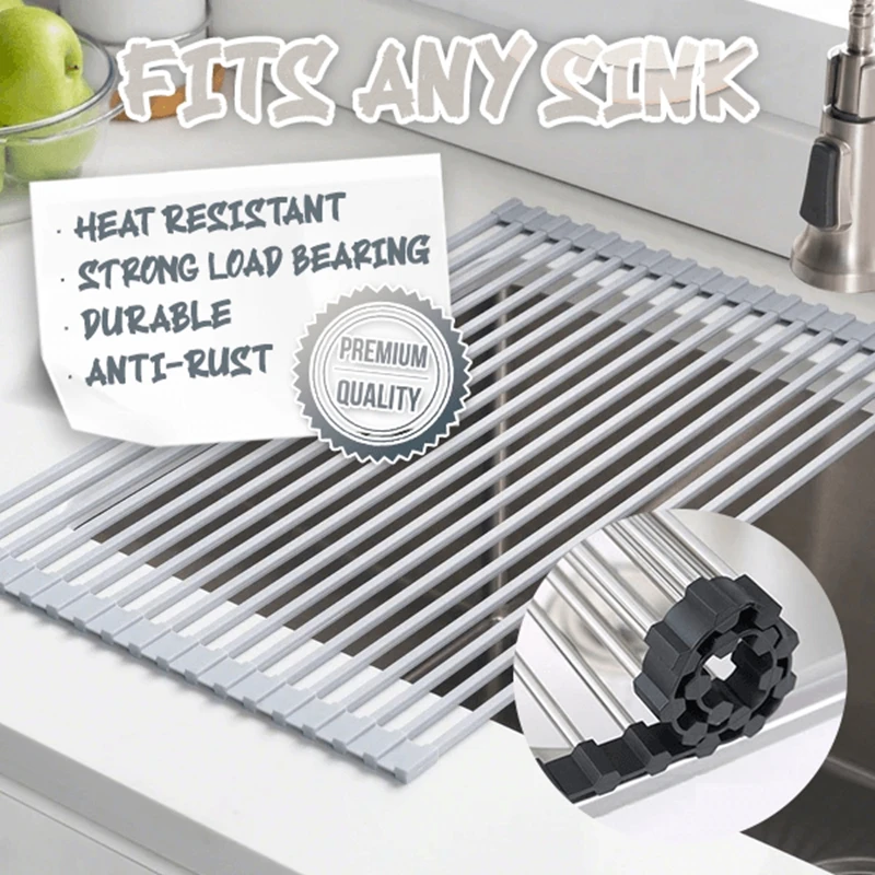 Kitchen Sink Rack Dish Drying Rack Foldable Roll-up Sink Draining Rack Stainless Steel Household Magic Rolling Sink Stand Black