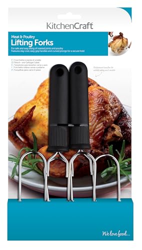 KitchenCraft Set da Forchettone per Carne, Acciaio Inossidabile, Nero/Argento