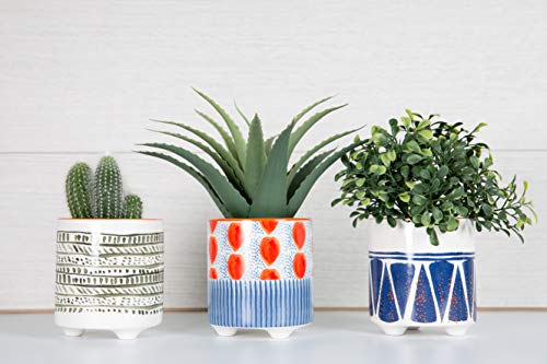 KitchenCraft - Vaso per piante da interni, motivo a pois e strisce, in ceramica, multicolore, 10 x 11 cm