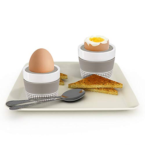 FACILE DA USARE - Queste tazze portauovo resistenti, prodotte per durare nel tempo, sono il modo perfetto per iniziare la tua giornata. Sia la ceramica bianca che gli inserti in silicone di una calda tonalità di grigio sono lavabili in lavastoviglie per una facile pulizia. Le parti sono facili da smontare e pulire (sia in lavastoviglie che a mano)