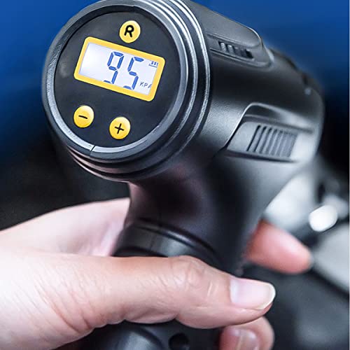 Kitwin Compressore Aria Portatile Digitale 12V 120W Compressore d'Aria Portatile per Auto con Luce LED 2000 mAh Batteria Mini Pompa Digitale Elettrica per Bicicletta Moto Pneumatici (B-21x18x5 cm)