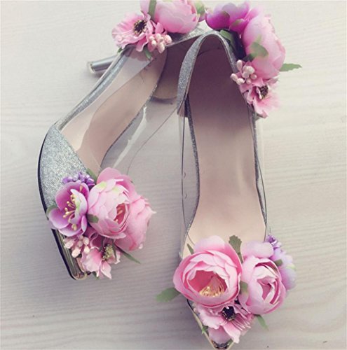 Kitzen Pattini di vestito dai fiori trasparenti del partito manuale della pompa della cinghia del tallone dello stiletto delle donne, 37