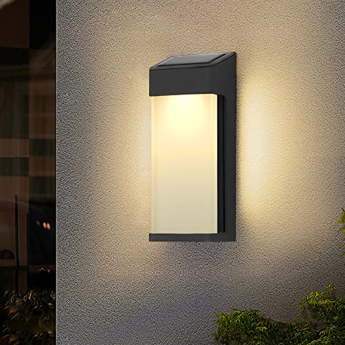 Kiwaezs applique solare da esterno, Nero applique da esterno,lampada da esterno Luce bianca calda 3000K, applique da parete esterno impermeabile IP44, applique led per Balcone, Corridoio, Giardino