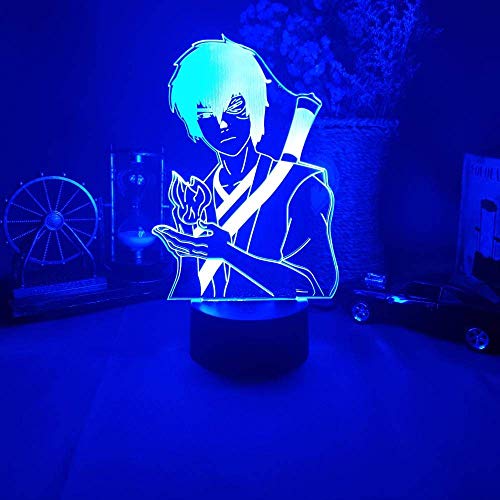 KJsdaADSA 3D Night Light Illusion Prince Zuko Silhouette Otaku Lamp Novità Led per bambini Camera da letto Decorazioni da scrivania Bambini 16 colori
