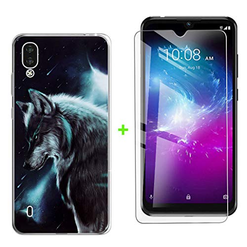 KJYF Custodia Cover + Pellicola Protettiva Vetro Temperato per ZTE Blade A5 2020 (6.09"), Protezione in Silicone Morbido Traslucido TPU Case Ultra Sottile - WMA16