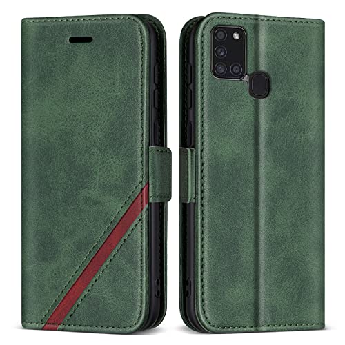 KKEIKO Cover per Galaxy A21S, Custodia in Pelle PU per Samsung Galaxy A21S, Magnetico Portafoglio Cover con Slot per Schede e Kickstand, Verde