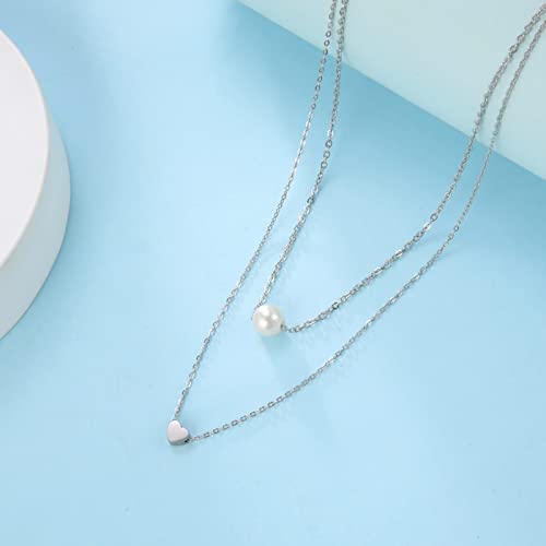 KKJOY Collana a strati in acciaio inossidabile con ciondolo a forma di cuore, collana con perline e perle, collana a strati per donne e ragazze