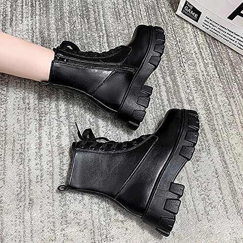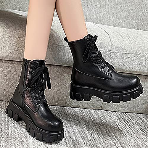 KKLL Stivali Donna Scarpe in Pelle Stivaletti Ankle Boots Tronchetti con Tacco da donna combattimento punta quadrata lacci e plateau tacco alto punk gotico metà polpaccio per le donne Chelsea