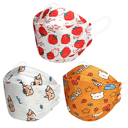 【Portatile】La confezione contiene 30 maschere protettive FFP2 con sigillo igienico sigillate singolarmente, puoi metterle nella borsa per uscire, più igieniche e più sicure. Ci sono tre modelli di cucciolo, fragola e piccolo dinosauro.Non applicabile agli adulti.