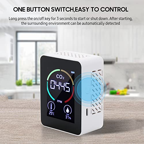 KKnoon Tester di concentrazione di CO2, mini rilevatore di anidride carbonica, misuratore di umidità e temperatura, monitor di qualità dell'aria batteria al litio 1200 mAh Contatore di CO2
