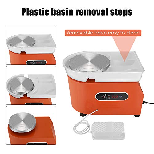 KKTECT Tornio per Ceramica elettrica 350 W 25 cm con Display LCD Ruota elettrica Ceramica Strumenti Artigianali Fai da Te con Kit di Strumenti in Ceramica da 11 Pezzi (Arancia)