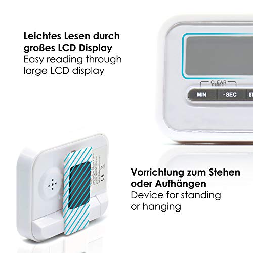 Klagena Timer elettronico con cronometro, con magnete e gancio per appendere - Timer/Cucina Orologio/Timer/orologio conto alla rovescia - 2 anni di garanzia di rimborso