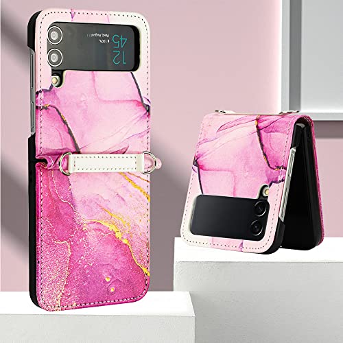 Klapber Custodia per Samsung Galaxy Z FLIP4 Custodia Pieghevole Cover per Galaxy Z FLIP 4 Cover in Pelle [Stampa Marmo] con Cavalletto Anti Collisione Silicone Custodia per Samsung Z FLIP4, T1
