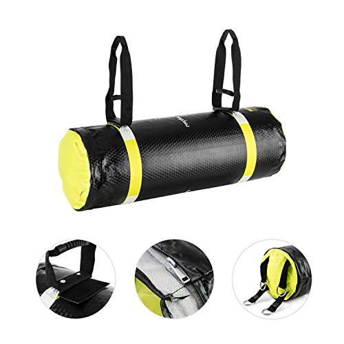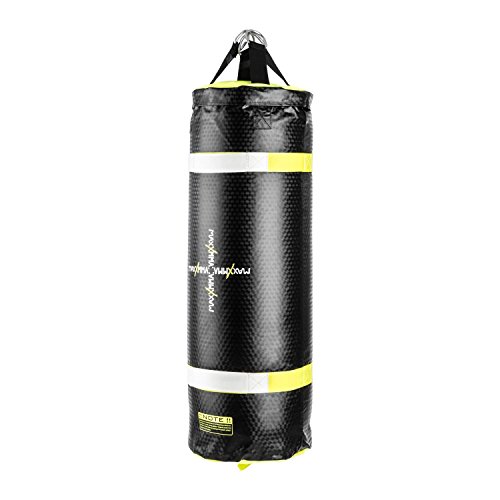 Klarfit Maxxmma A Sacco da boxe Power Bag Uppercut Bag Riempimento acqua/aria a sospensione (33 x 155 cm (ØxL), da 35 a 55 litri, impugnature per uso come Powerbag, pompa per aria) nera/gialla