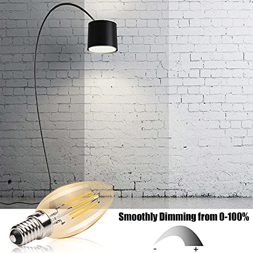 【Non tremolante dimmerabile】 4 W E14 C35 LED ambra, dimmerabile da 0% al 100%, si prega di non utilizzare dimmer a incandescenza e alogeni per collegare questa lampadina, sfarfallerà e non funziona, consigliamo il dimmer LED Triac & Varilight Pro per te. Il vetro ambrato offre una luce più calda, sembra un po' più scura rispetto alla lampadina in vetro trasparente.