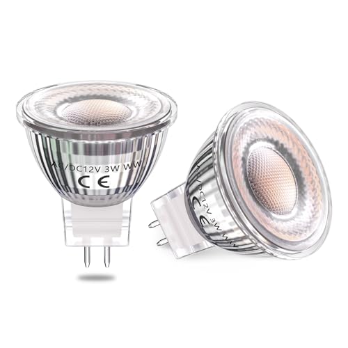 Klarlight 3W MR11 GU4 LED Lampadine AC/DC12V Lampadine GU4 LED Bianco Caldo 3000K Bi-Pin GU4.0 Lampadina Faretti LED 12V per Illuminazione Binario, Luci Incasso, Spotlight (2-Pack, Non Dimmerabile)