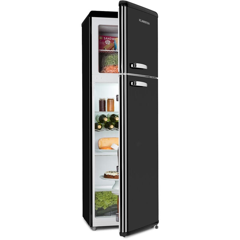 È tempo di cambiare, è tempo di rock 'n' roll in cucina: con frigorifero combinato con congelatore Audrey Retro di Klarstein i rockeggianti anni '50 si fanno strada nella cucina moderna! Oltre all'esclusivo look rétro, convince grazie ai suoi ampi interni, composti da una zona di raffreddamento, uno scomparto freezer e una zona crisp a 0 °C, che mantiene frutta e verdura fresca a lungo! Alta tecnologia in formato rock 'n' roll: il frigorifero combinato con congelatore Klarstein Audrey Retro. Caratteristiche: Rock 'n' Roll: frigorifero rétro dal look anni '50 Zona Crisp a 0°C: mantiene frutta e verdura fresche a lungo Sistema EcoExcellence: economico ed ecologico 194 l di volume: ampio compartimento di raffreddamento 56 l di volume: scomparto congelatore con ripiano con griglia Fornitura: 1 frigorifero 1 raschietto per il ghiaccio 1 stampo per cubetti di ghiaccio 1 porta-uova (12 pezzi) Manuale d'uso in diverse lingue Dimensioni: Dimensioni: ca. 55 x 172 x 55 cm (LxAxP) Dimensioni