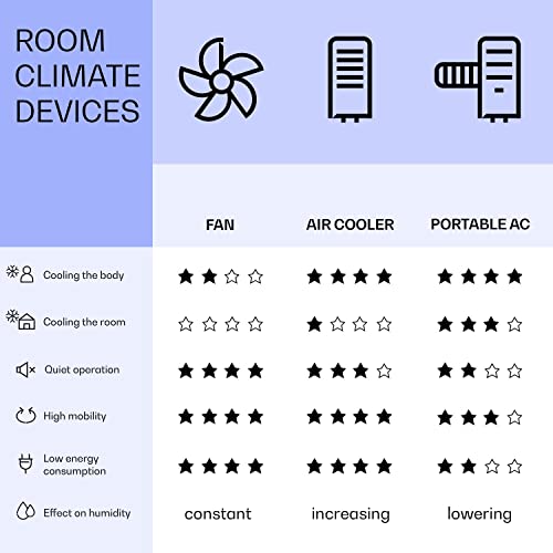 VERSATILE 5IN1: Il nostro condizionatore portatile rinfresca nelle giornate più calde grazie ai suoi 12.000 BTU/3,5 kW. Il suo deumidificatore è la miglior difersa contro l'umidità ed il suo filtro a carbone attivo garanisce un'aria sempre pulita.