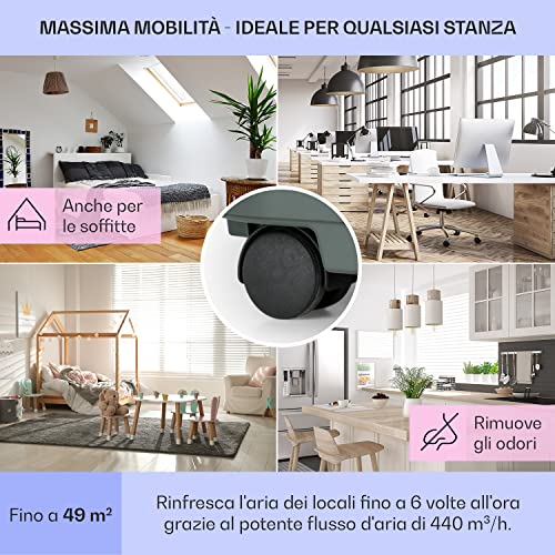 VERSATILE 5IN1: Il nostro condizionatore portatile rinfresca nelle giornate più calde grazie ai suoi 10.000 BTU/2,9 kW. Il suo deumidificatore è la miglior difesa contro l'umidità ed il suo filtro a carbone attivo garanisce un'aria sempre pulita.