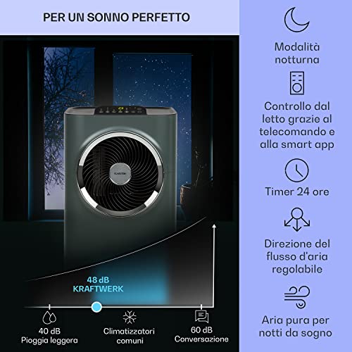 Klarstein Condizionatore Portatile 5 in 1, Condizionatore Deumidificatore Portatile Classe A, Aria Condizionata 10.000 BTU/2,9kW, Purificatore, Climatizzatore Portatile con Night Mode, Wi-Fi/App