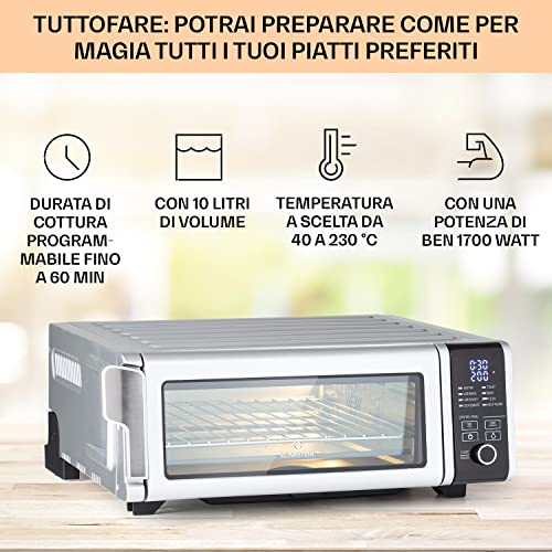 RISCALDA PIÙ VELOCE DI UN FORNO: Questa friggitrice e forno ad aria passa da freddo a caldo più velocemente di un forno convenzionale grazie ai suoi 1700 W di potenza, facendoti risparmiare tempo da dedicare alle tue passioni, incluso mangiare.