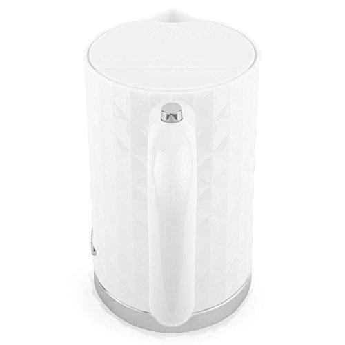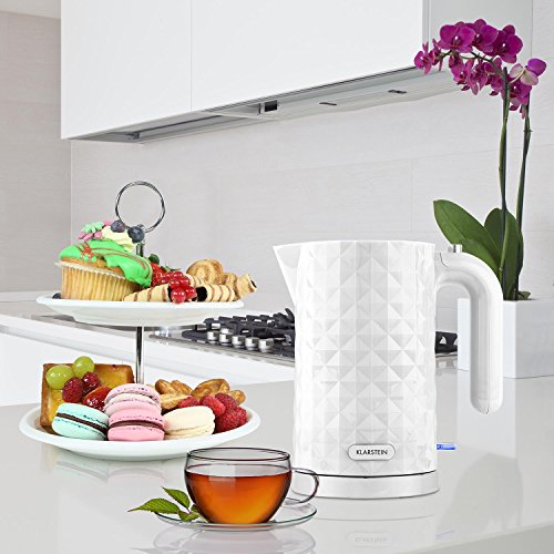 Klarstein Granada Bianca - Teiera, Bollitore dell'acqua, design taglio diamante, 1,7 l, 2200 W, wireless, impugnatura cool-touch, base con riavvolgimento cavo, filtro anticalcare, bianco