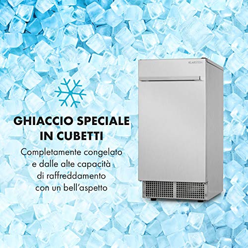 KLARSTEIN Icetender - Macchina Professionale per Ghiaccio, Cubetti di Ghiaccio, Ghiaccio Tritato, 30kg/24h, Capacità 11,5 kg, 78cm, Fabbricatore di Cubetti di Ghiaccio, Acciaio Inox, Argento