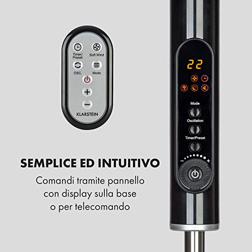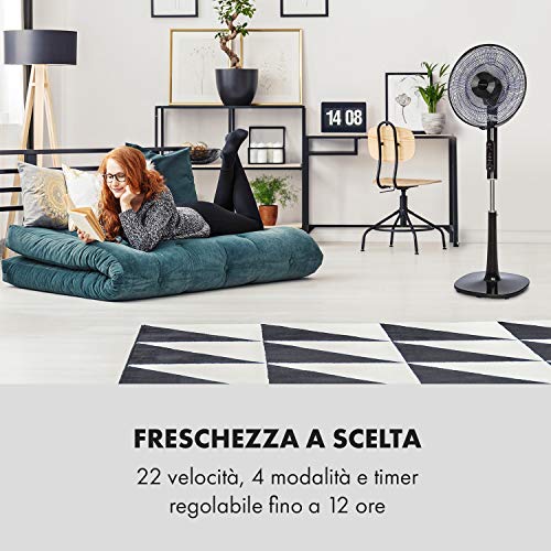 KLARSTEIN Sommerwind - Ventilatore a Piantana, Rotore: 16"(41 cm), Potenza Assorbita: 35 W, 4 Modalità, Timer 12 h, 22 Livelli di Velocità, Flusso d'aria Max. 5.544 m³/h, Oscillazione, Nero