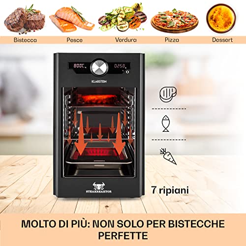 KLARSTEIN Steakreaktor Core - Griglia ad Alta Temperatura, Grill Indoor, 2100 W, Intervallo di Temperatura: 200-800 °C, Elemento Riscaldante a Irraggiamento, Nero