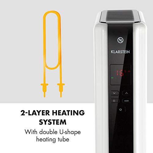 Klarstein Thermaxx 2500 - Radiatore ad Olio, Riscaldamento Elettrico, 2500 W, 5-35 ° C, Forma Speciale a Coste, Display LED, Timer 24 Ore, Bianco-Nero