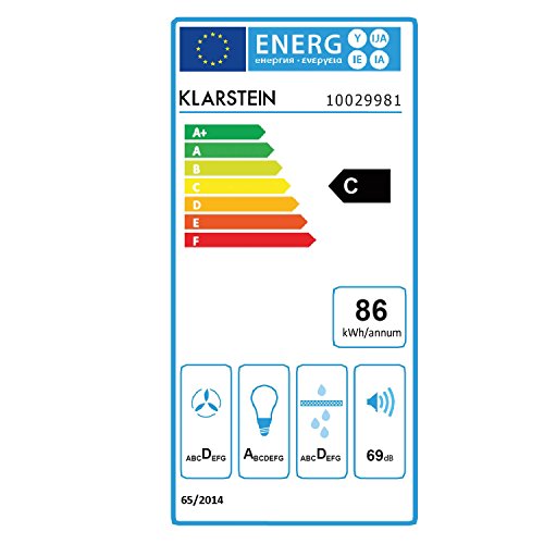 Klarstein Violetta Bianco Cappa Aspirante da cucina in acciaio inox (90 cm, potenza di aspirazione pari a 541 m³/h, illuminazione LED, 2 filtri al carbone attivo inclusi) - bianco