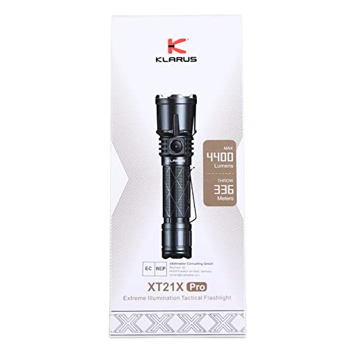 Klarus XT21X Pro Torcia Led Ricaricabile,4400 Lumen Torcia LED Super Luminosa, 336 Metri, LED USB Ricaricabile XT21X PRO Nero
