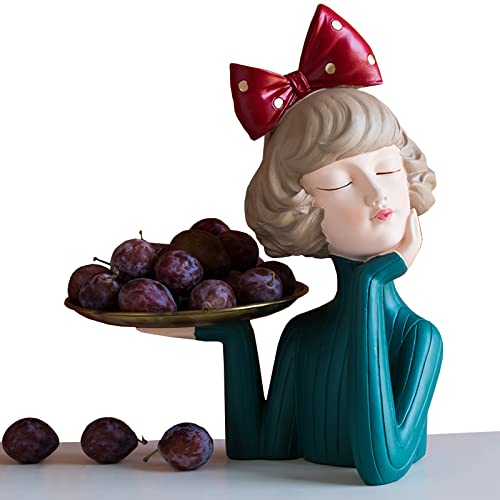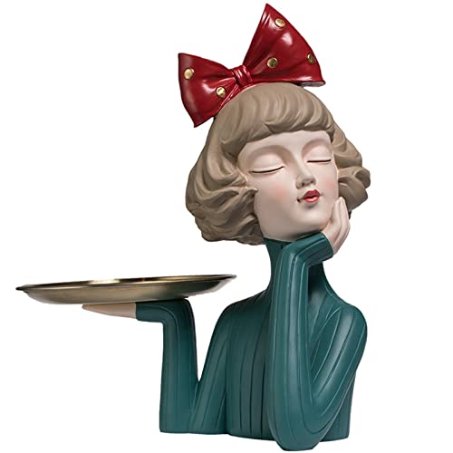 KLCRlGOM Soprammobili Moderni - 33 cm Nordic Statua Resina Vassoio Ragazza Bowknot Figurine Ornamenti per Soggiorno Complementi Arredo Casa Accessori Ufficio da Tavolo Scultura Artigianato,Green