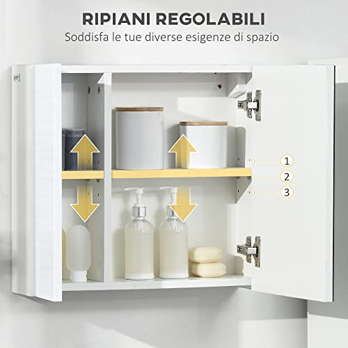 Kleankin Bathroom Cabinet with Mirror, Double Door Wall Mounted Storage Cupboard Organizer with Adjustable Shelves, White
