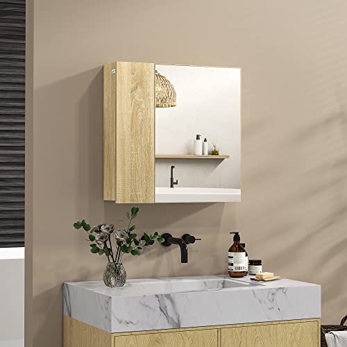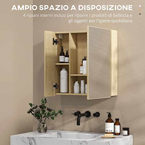 Kleankin Mobile da Bagno con Specchio e 4 Ripiani Interni, in Truciolato, 60x15x60cm, Color Legno