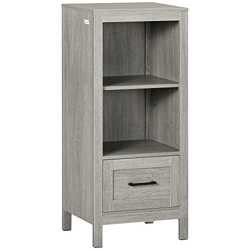 Kleankin Mobiletto Bagno Salvaspazio con Ripiani e Cassetto, Armadietto Bagno in Legno Multiuso, 40x30x89cm, Grigio