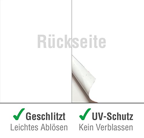100 per cento Made in Germany: L'etichetta adesiva di videosorveglianza sono prodotte in Germania. Qui un film di qualità superiore con protezione UV viene utilizzato, in modo che l'etichetta non ingiallisce anche alla luce solare diretta. Inoltre, la telecamera di sorveglianza per proteggere adesivo dalla pioggia e graffi. Gli adesivi possono sempre rimuovere eventuali residui.