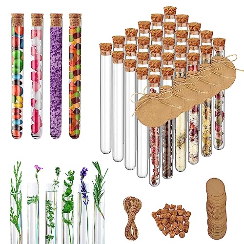 【Set combinato multifunzionale】 Il set comprende 40 provette in plastica da 20 ml e 50 etichette regalo da 4 cm, 50 corda di canapa da 20 cm, l'intero set di provette di plastica è molto completo, in grado di soddisfare le diverse esigenze dei vostri esperimenti o di stoccaggio del materiale.